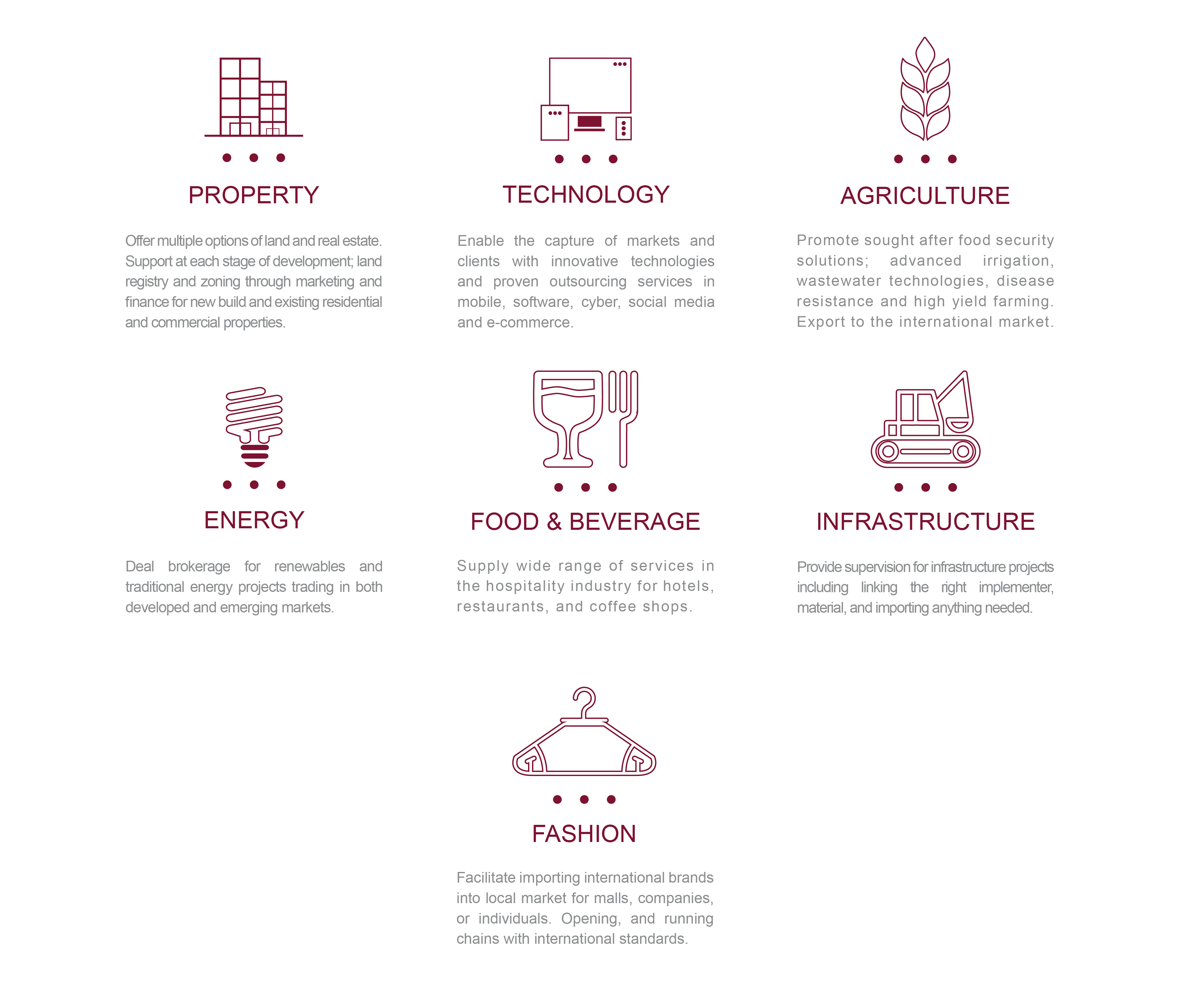 Outside of our holding group, we find creative finance solutions including project financing, working with private equity placement, investors and international financing bodies.